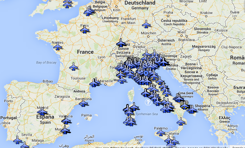 Al posto della solite vie e strade, le sagome di piccole frecce blu corrispondenti alle segnalazioni degli utenti e spesso alle foto della scie individuate.