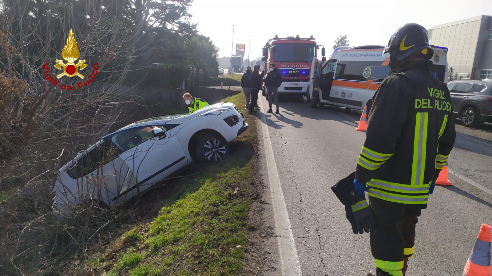Alle 12:30 circa, i vigili del fuoco sono intervenuti in Via Cavour a Brendola per lo scontro tra un furgone e un’auto finita fuoristrada nel fossato: ferita la conducente. I pompieri arrivati da Lonigo, hanno messo in sicurezza i mezzi ed estratto dall’auto la donna alla guida, rimasta incastrata nell’abitacolo. La donna è stata stabilizzata dai sanitari del SUEM e trasferita in ospedale. Illesa la conducente del furgone. Sul posto i carabinieri per i rilievi del sinistro. Le operazioni di soccorso dei vigili del fuoco sono terminate dopo circa un’ora e mezza.
