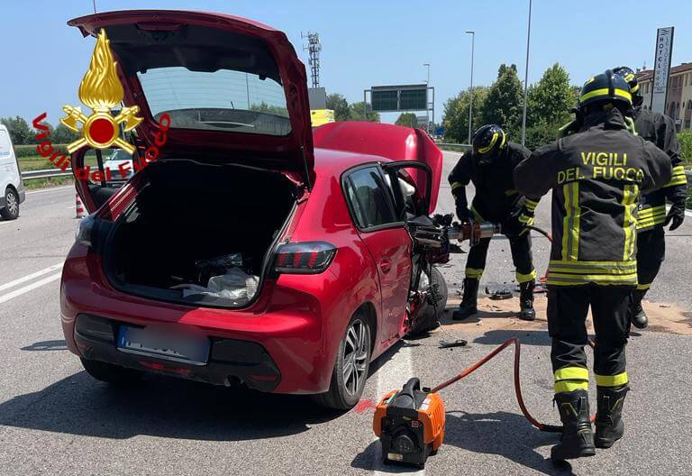 Alle 12:30, di sabato, i vigili del fuoco sono intervenuti lungo la strada Postumia a Bolzano Vicentino all’altezza dell’ingresso dell’autostrada A31 per un incidente tra 4 auto: una donna ferita. I pompieri arrivati da Vicenza, hanno messo in sicurezza i mezzi incidentati, mentre la donna alla guida della Peugeot è stata presa in cura dal personale del Suem per essere trasferita in ospedale. I carabinieri hanno deviato il traffico ed eseguito i rilievi del sinistro. Le operazioni di soccorso dei vigili del fuoco sono terminate dopo circa un’ora.
