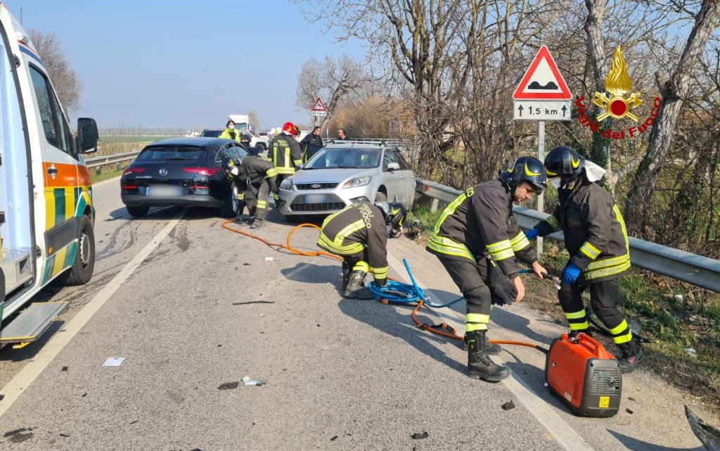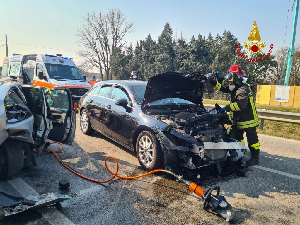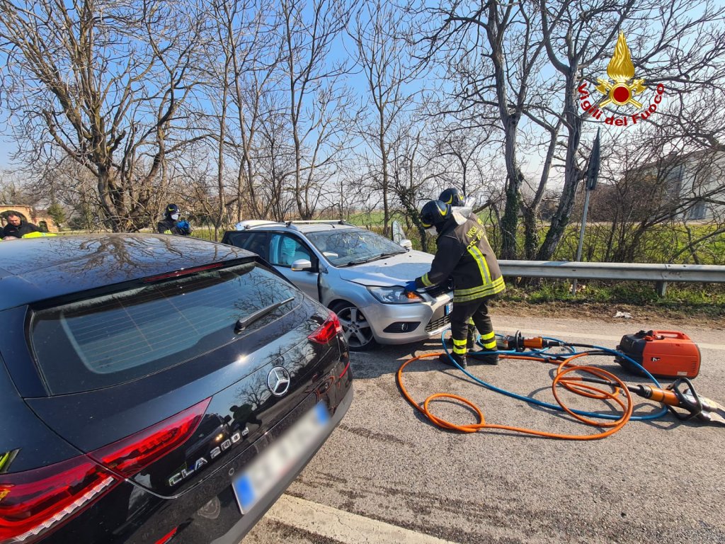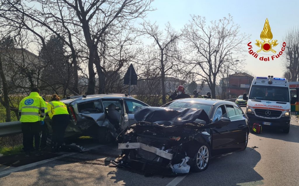 Poco dopo le 10:30, i vigili del fuoco sono intervenuti lungo la SP 247 Riviera Berica ad Agugliaro incrocio con Via Pilastro del comune di Campiglia dei Berici per un incidente tra due auto: un ferito. Il primo intervento di soccorso da parte di un vigile del fuoco di passaggio, prima dell’arrivo della squadra di Lonigo. I pompieri hanno messo in sicurezza i mezzi ed utilizzando cesoie, martinetti e divaricatori idraulici estratto il conducente, rimasto incastrato all’interno della Ford Focus. Il ferito è stato stabilizzato dai sanitari del SUEM ed elitrasportato in codice rosso all’ospedale di Vicenza. Illeso il conducente della Mercedes CLA. Sul posto la polizia locale per la deviazione del traffico e i rilievi del sinistro. Le operazioni di soccorso dei vigili del fuoco sono terminate dopo circa un’ora e mezza.