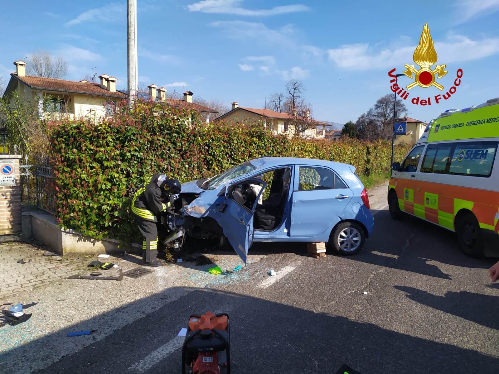 Alle 9:45, di venerdì, i vigili del fuoco sono intervenuti lungo la SP 48 in Via Colleoni a Malo per lo scontro tra due auto: ferita un’anziana. I pompieri accorsi da Schio hanno messo in sicurezza i mezzi ed estratto e coadiuvato il personale del Suem al soccorso dell’anziana conducente rimasta ferita. La donna è stata presa in cura dal personale del Suem e trasferita in ospedale. Illeso l’altro conducente. Danneggiata la ringhiera di un’abitazione. La polizia locale ha deviato il traffico ed eseguito i rilievi del sinistro. Le operazioni di soccorso dei vigili del fuoco sono terminate dopo circa un’ora e mezza.