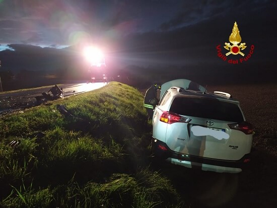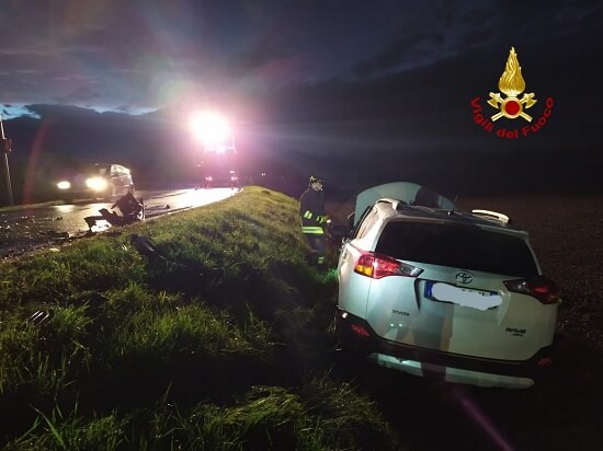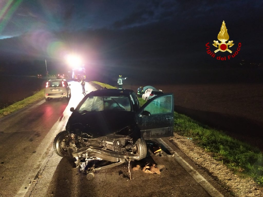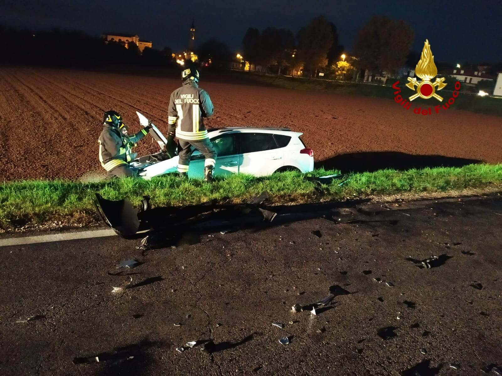Alle 17:20, i vigili del fuoco sono intervenuti in via Palladio a Meledo di  Sarego per lo scontro tra una Toyota Rav 4 finita fuori strada nel campo e una Volkswagen Golf: tre feriti. I pompieri arrivati da Lonigo, hanno messo in sicurezza i mezzi, mentre i feriti, la coppia che viaggiava a bordo del piccolo SUV e l’autista del Golf  erano assistiti dal personale del Suem 118 per poi essere trasferiti in ospedale in ambulanza. I carabinieri di Campiglia hanno eseguito i rilievi per ricostruire la dinamica del sinistro. Le operazioni di soccorso dei vigili del fuoco sono terminate dopo circa un’ora.