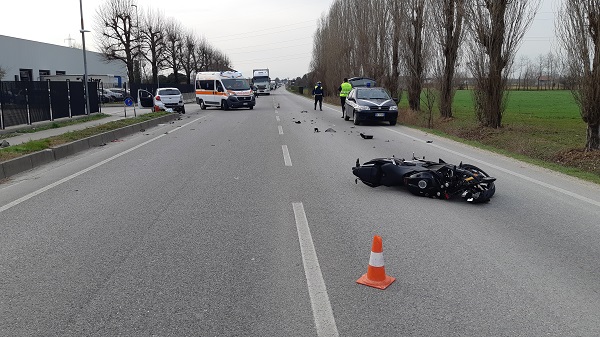 Un giovane motociclista 17enne (L.P.) a bordo della propria motocicletta Yamaha 125, mentre percorreva la SP 248, via Piave di Sandrigo, diretto verso Marostica, giunto davanti la ditta FITT si è scontrato con una Ford fiesta condotta da un 20enne proveniente in senso opposto di marcia e diretta all’interno della ditta ivi presente.