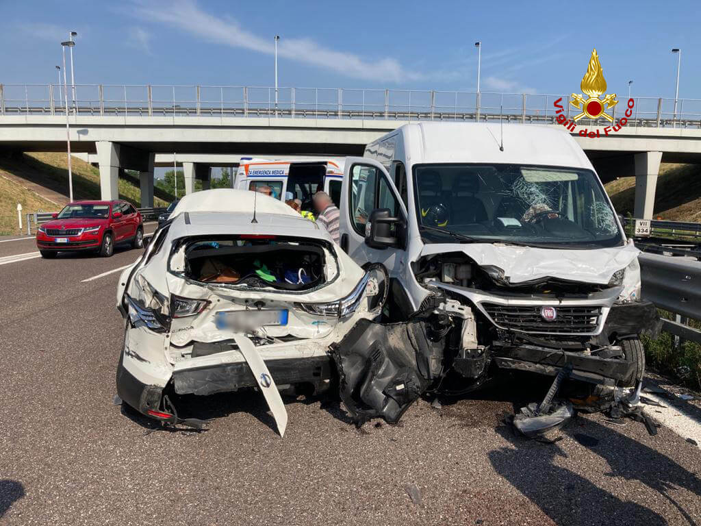 Poco prima delle 9.00, i vigili del fuoco sono intervenuti in autostrada poco prima dello svincolo di Vicenza Est in direzione Venezia per un incidente tra un furgone e un’autovettura feriti i due conducenti. I pompieri arrivati dalla centrale, hanno messo in sicurezza i mezzi, mentre i feriti riusciti a uscire autonomamente sono stati assistiti dal personale sanitari del SUEM per poi essere trasferiti in ambulanza in ospedale. Sul posto il personale ausiliario di autostrada e la Polstrada. Le operazioni di soccorso dei vigili del fuoco sono terminate dopo circa un’ora.