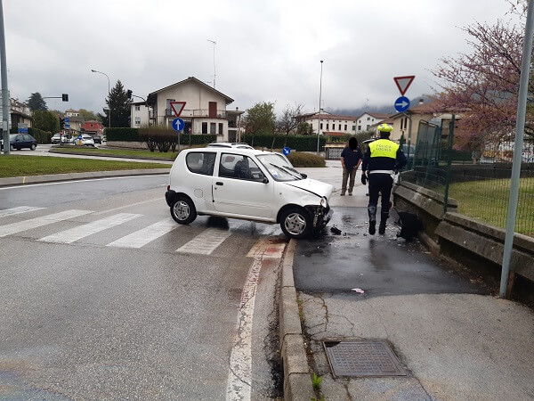 Alle ore 13.40 circa di lunedì 12 aprile due pattuglie del Consorzio Polizia Locale Alto Vicentino di Schio sono intervenute in via della Potara a Schio, all’incrocio con via L. Da Vinci per il rilievo di un incidente con feriti.