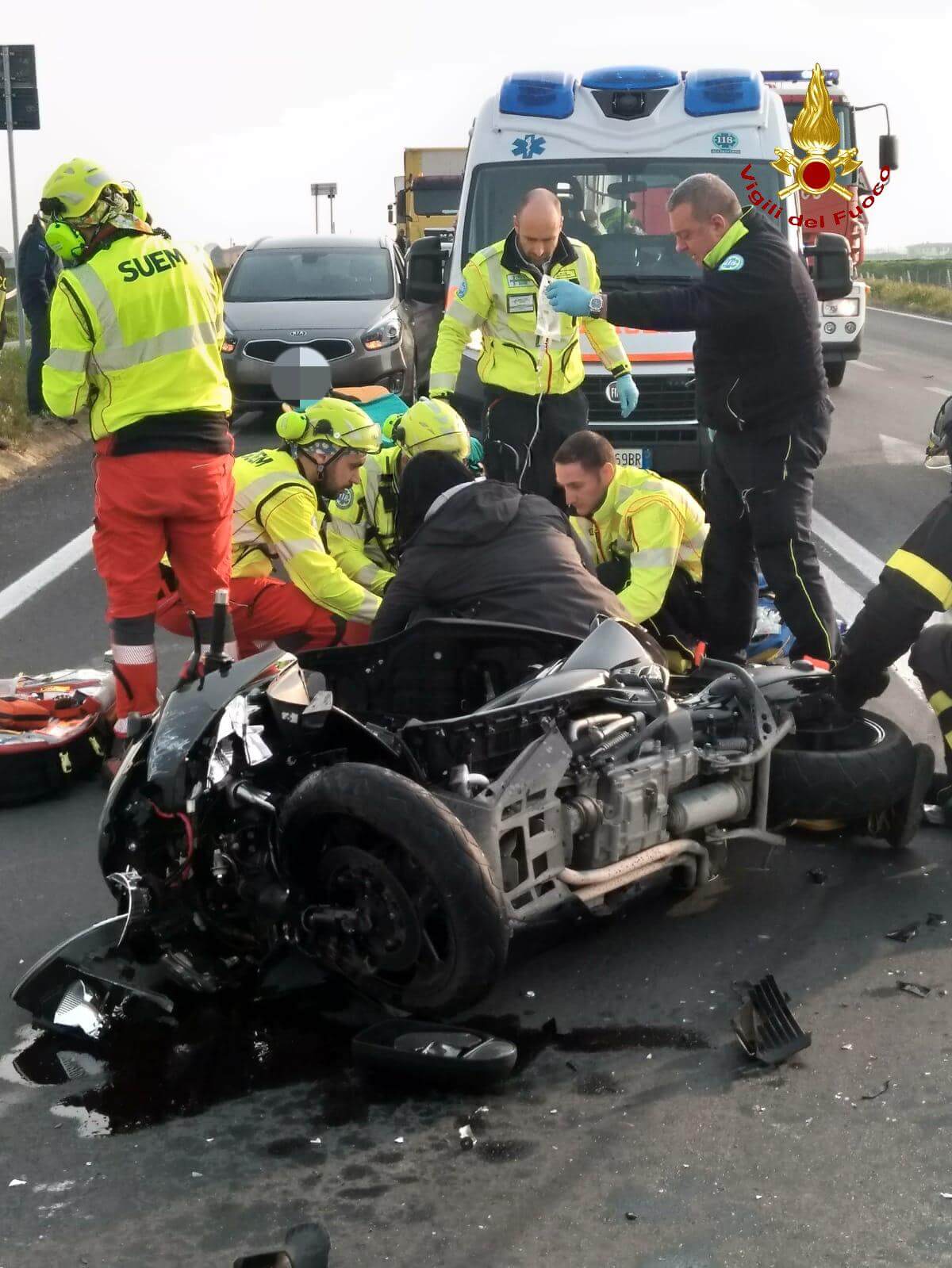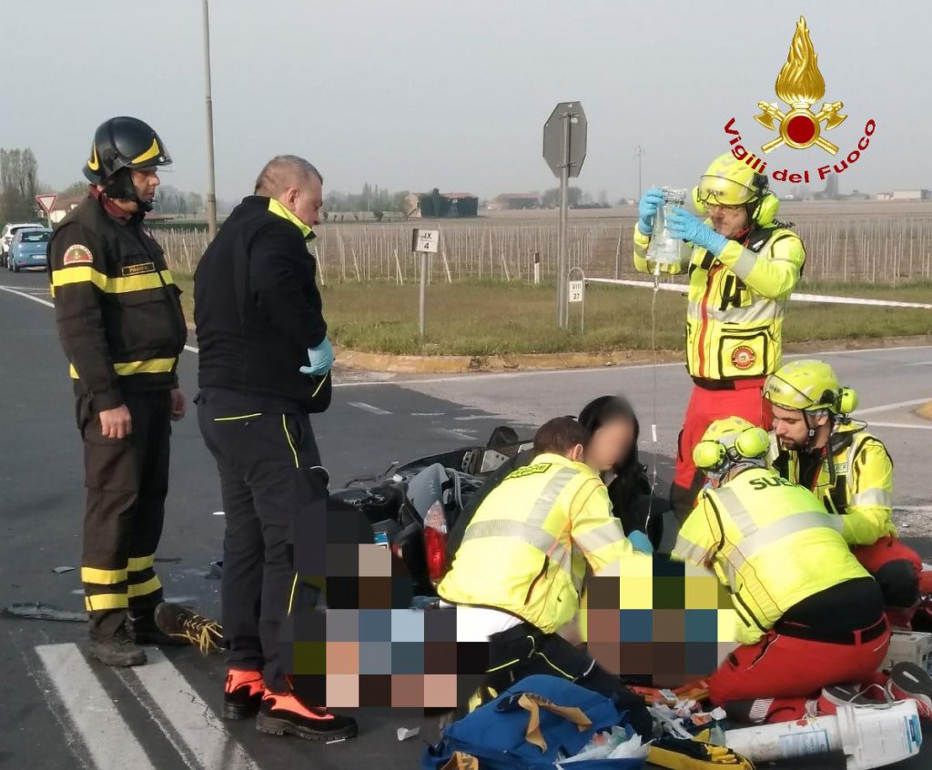Poco dopo le ore 8, i vigili del fuoco sono intervenuti lungo la strada regionale padovana all’altezza di via Santa Caterina a Correzzola per lo scontro tra una moto e un furgone: grave il centauro. La squadra dei pompieri accorsa da Piove di Sacco ha messo in sicurezza i mezzi, mentre il motociclista era assistito dal personale del Suem del 118. Il centauro è stato stabilizzato ed elitrasportato in ospedale in codice rosso. Illeso l’autista del furgone. La polizia stradale ha eseguito i rilievi del sinistro. Le operazioni di soccorso sono terminate dopo circa un’ora.