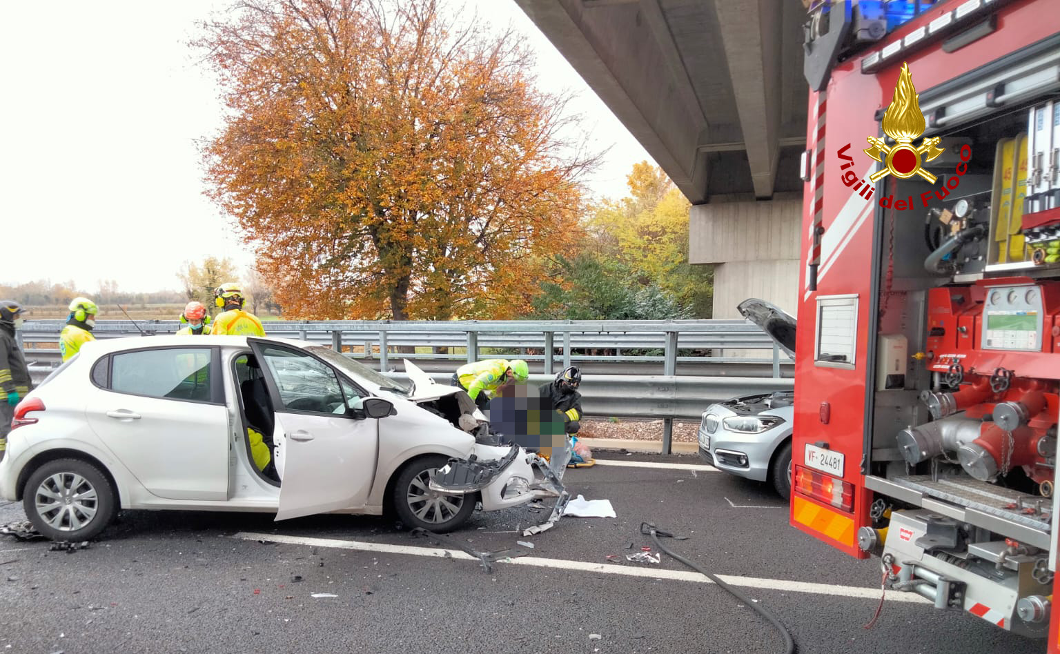 Alle 11:10, i vigili del fuoco sono intervenuti in autostrada A31 Valdastico, tra il casello di Thiene e la diramazione per la superstrada Pedemontana Veneta, in direzione Vicenza per un incidente tra due auto: feriti i due conducenti. I pompieri arrivati da Schio, hanno messo in sicurezza i mezzi, ed estratto uno dei conducenti rimasto incastrato nell’abitacolo della vettura. I due feriti sono stati presi in cura dal personale sanitario del SUEM, stabilizzati e trasferiti in ospedale: uno in eliambulanza a Vicenza l’altro in ambulanza a Santorso. Sul posto la polstrada e il personale ausiliario di autostrada. Le operazioni di soccorso dei vigili del fuoco sono terminate dopo circa un’ora.