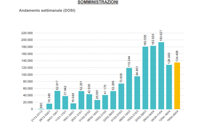 Dopo una settimana in calo, sono tornati a crescere i vaccinati settimanali in Veneto. Nella giornata di ieri sono state somministrate 33 mila dosi e più di 8 mila persone hanno completato il loro ciclo. In totale, quasi mezzo milione di veneti ha già effettuato il ciclo completo.