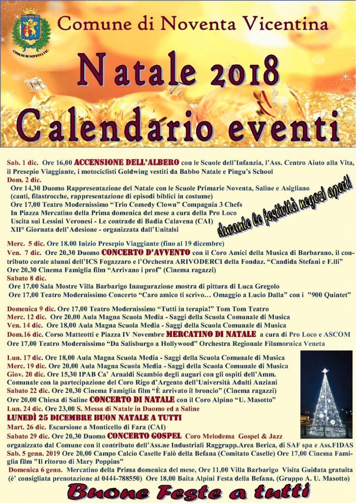 Pronte a partire le iniziative natalizie nel capoluogo del Basso Vicentino. Si inizia domani con l’accensione dell’albero, ma fino all’Epifania sono moltissimi gli eventi organizzati dall’Amministrazione con la Pro Loco e le associazioni del territorio. Un cartellone pensato per incontrare le esigenze di tutte le fasce d’età e le aspettative. Dai motociclisti vestiti da Babbo Natale ai concerti coristici, di musica classica e Gospel. Previsto anche il mercatino di Natale.