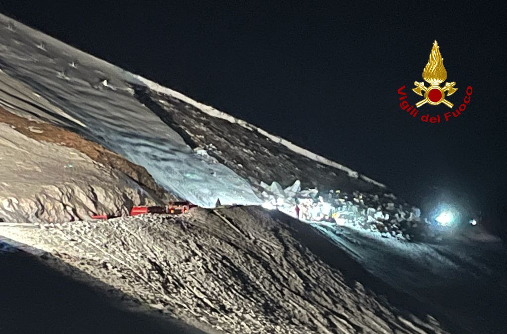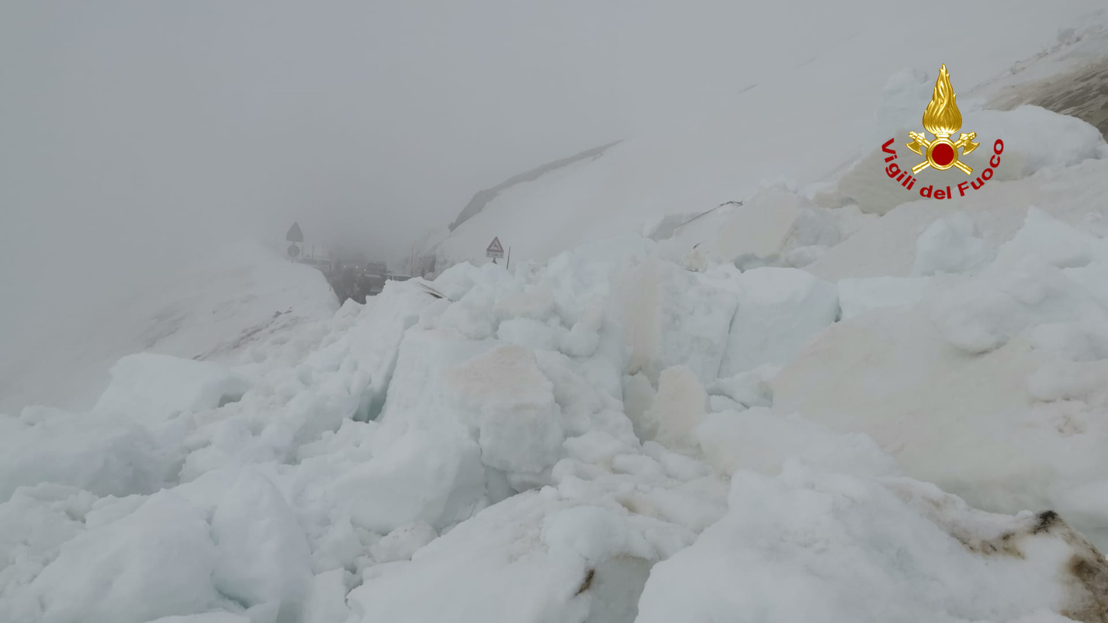 Proseguono i lavori di sgombero anche con un escavatore e parrebbe esclusa la presenza di persone o auto sotto la neve.