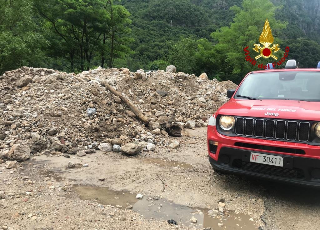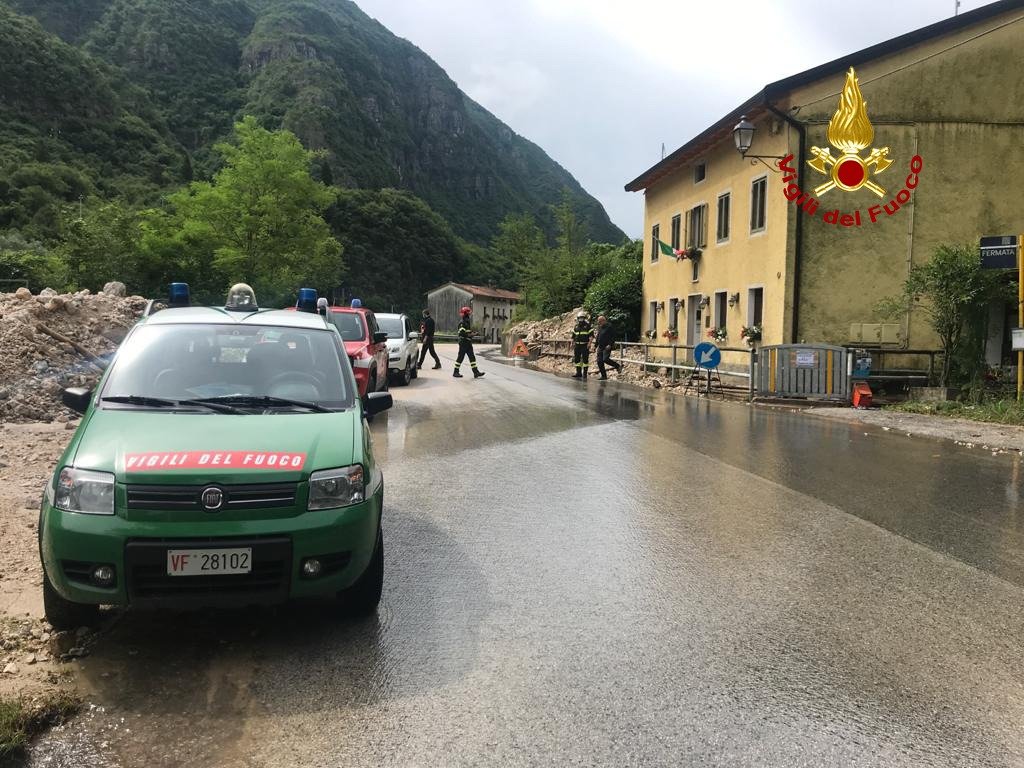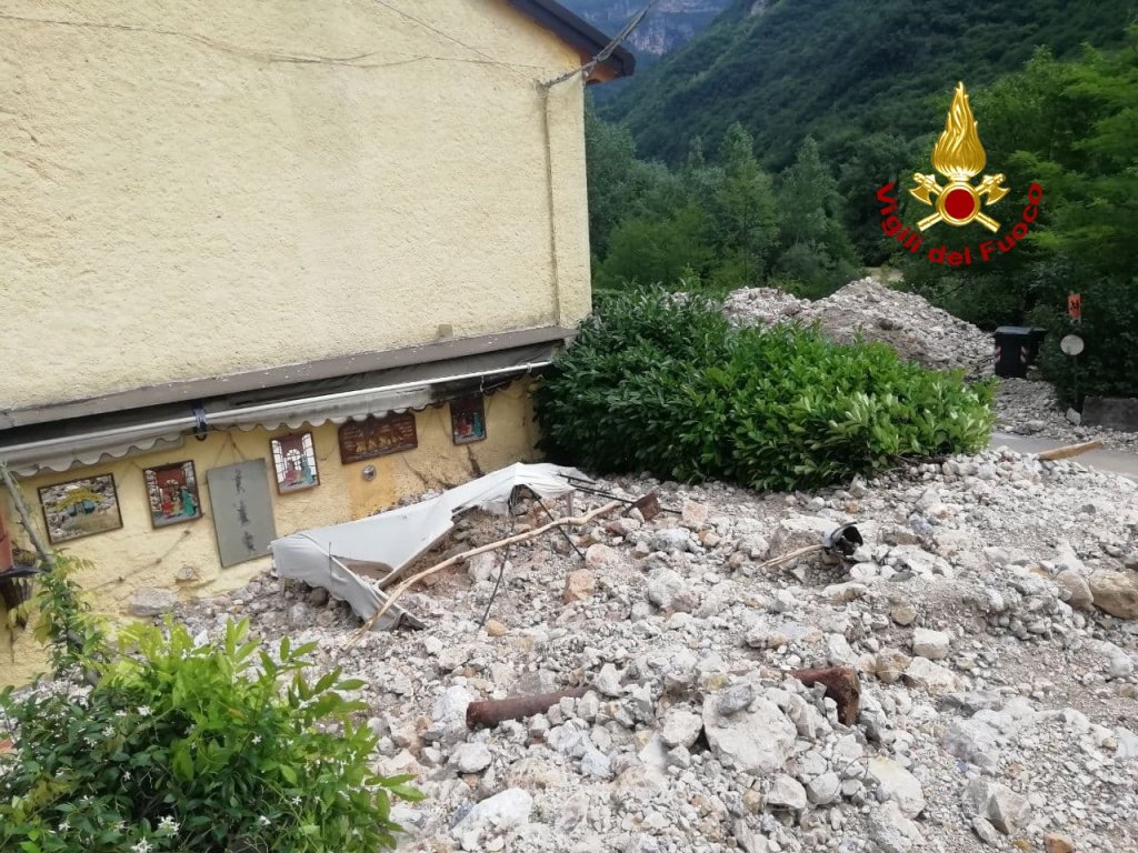 Ecco le immagini del soopralluogo eseguito dai vigili del fuoco ad Arsiero per uno smottamento causato dal nubifragio di ieri. Un canale interrato che attraversa la SP 350 si è tappato e tutto il materiale detritico scaricato dal monte ha invaso il ristorante e la strada.