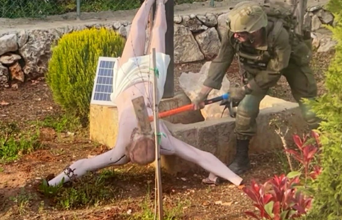 Ha suscitato reazioni diffuse la circolazione di una fotografia che mostra un soldato israeliano mentre colpisce con una mazza una statua di Gesù, situata nel Libano meridionale. L’episodio ha generato dure prese di posizione a livello politico, militare e religioso.