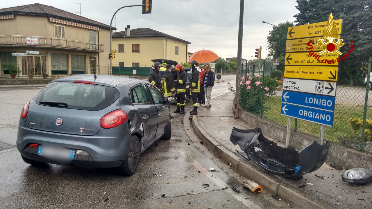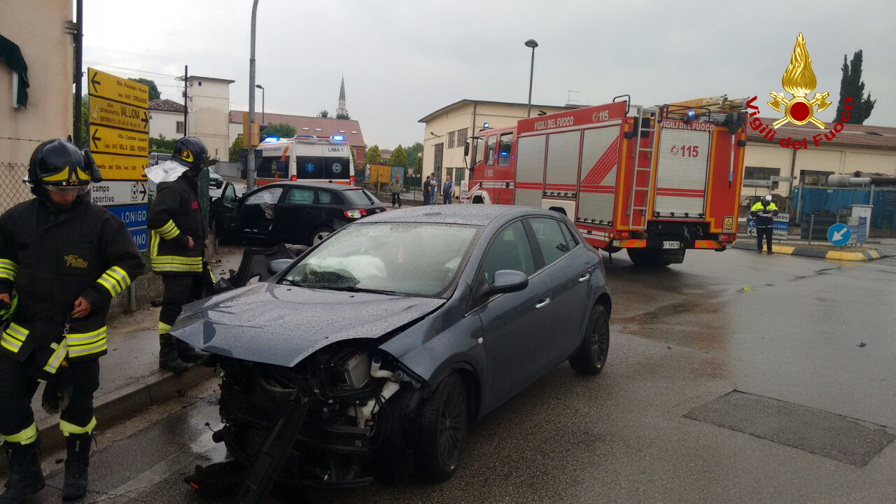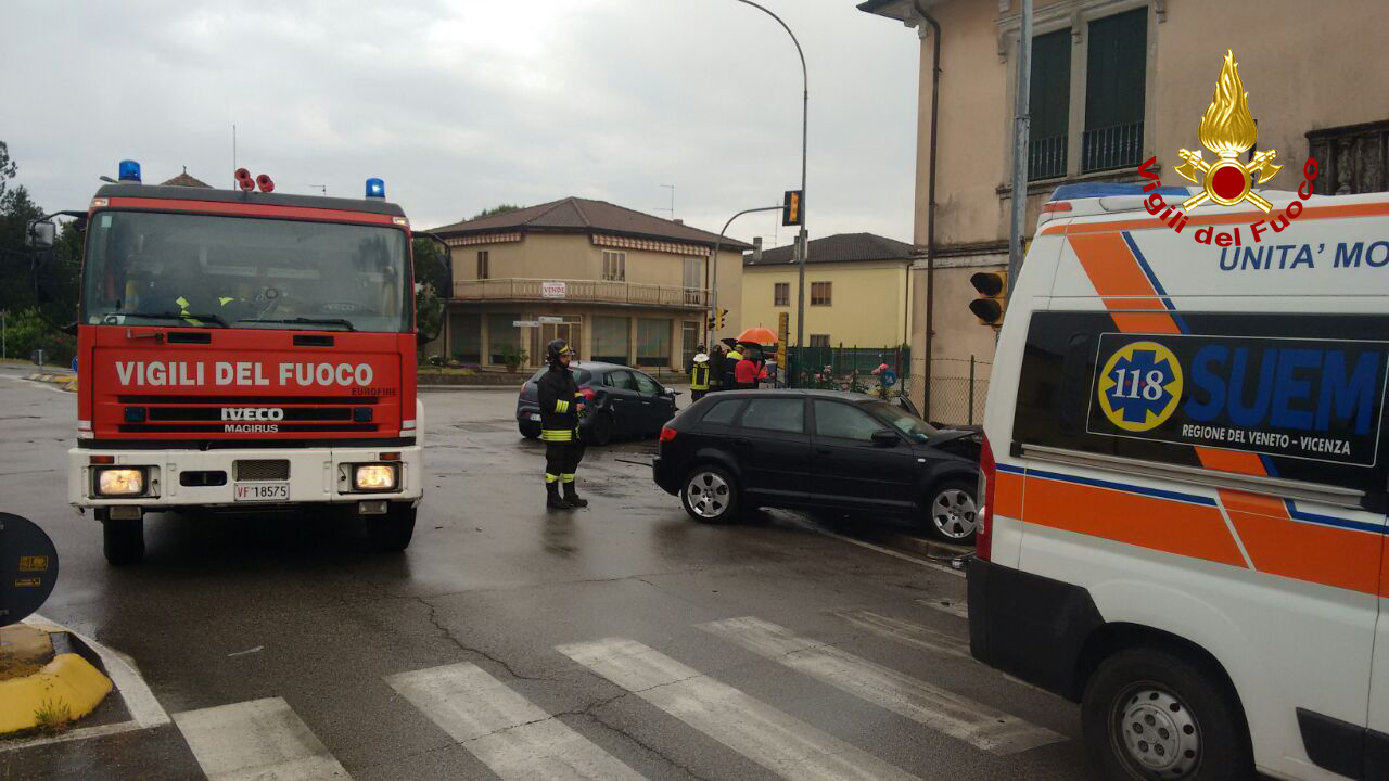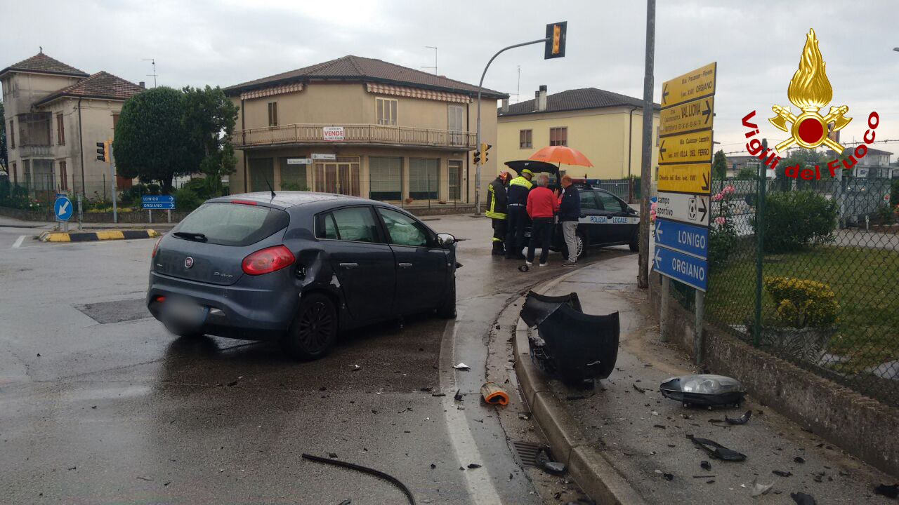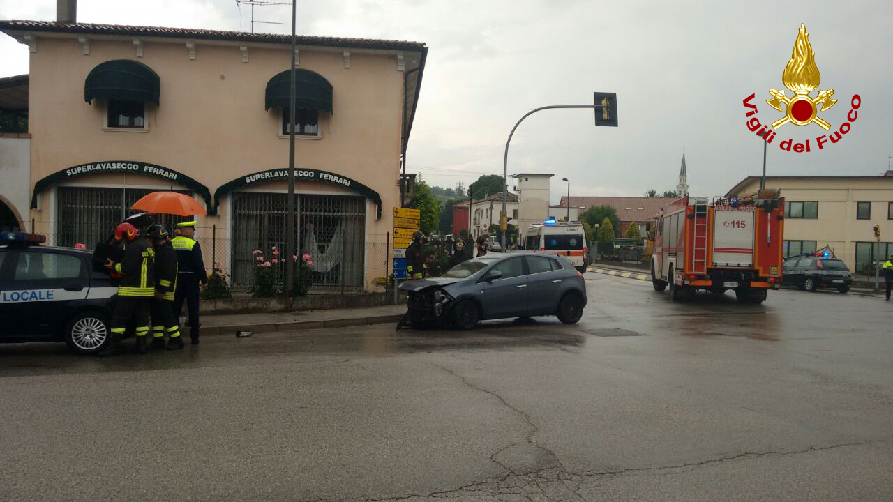 Poco dopo le ore 12.30, i vigili del fuoco sono intervenuti all’incrocio semaforico tra via Seccalegno e san Sepolcro a Sossano per lo scontro tra due autovetture: una persona ferita. I pompieri di Lonigo hanno messo in sicurezza i mezzi e collaborato con il personale del suem 118 nel soccorrere una 50 enne di Barbarano, rimasta ferita nell’Audi A3 di cui era alla guida. La donna è stata portata in ospedale in ambulanza. Medicati sul posto il conducente e il passeggero della Fiat Bravo. La polizia locale del basso vicentino ha eseguito i rilievi per ricostruire la dinamica del sinistro. Le operazioni di soccorso sono terminate dopo un’ora.