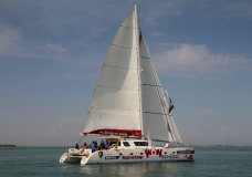 A bordo sono presenti il Comandante dell’imbarcazione Daniel Valli e il marinaio Matteo Rapposelli, dipendenti civili dell’armatore del catamarano, l’operatore dell’Agenzia di Comunicazione “On Air” Carlo Concina; il Maresciallo Gaetano Minardi, skipper della Marina Militare; il Capo di 2° Classe – del GSPD (Gruppo Sportivo Paralimpico Difesa), l’ex Sott.le della Brigata Marina San Marco, Andrea Quarta, disabile motorio, con l’accompagnatore Capo 2° Classe Donato Giurgola, il Presidente Nazionale della Classe Hansa, Carmelo Forastieri, anch’egli disabile motorio con Gianluca Beretta, suo accompagnatore.