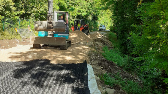 Nel dettaglio è stata effettuata la bonifica completa della fondazione stradale e si è proceduto con l’inserimento di una geogriglia tridimensionale di rinforzo e successivi strati di conglomerato bituminoso, performanti per garantire una maggiore vita utile della strada. È stato inoltre realizzato un nuovo scolo delle acque meteoriche.