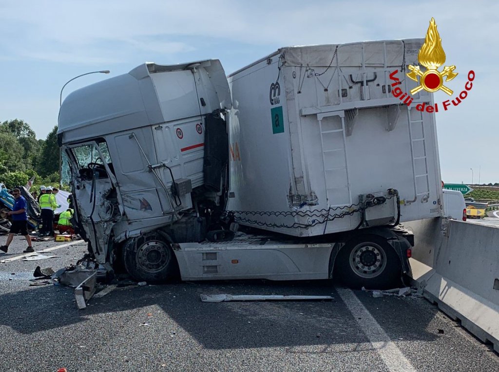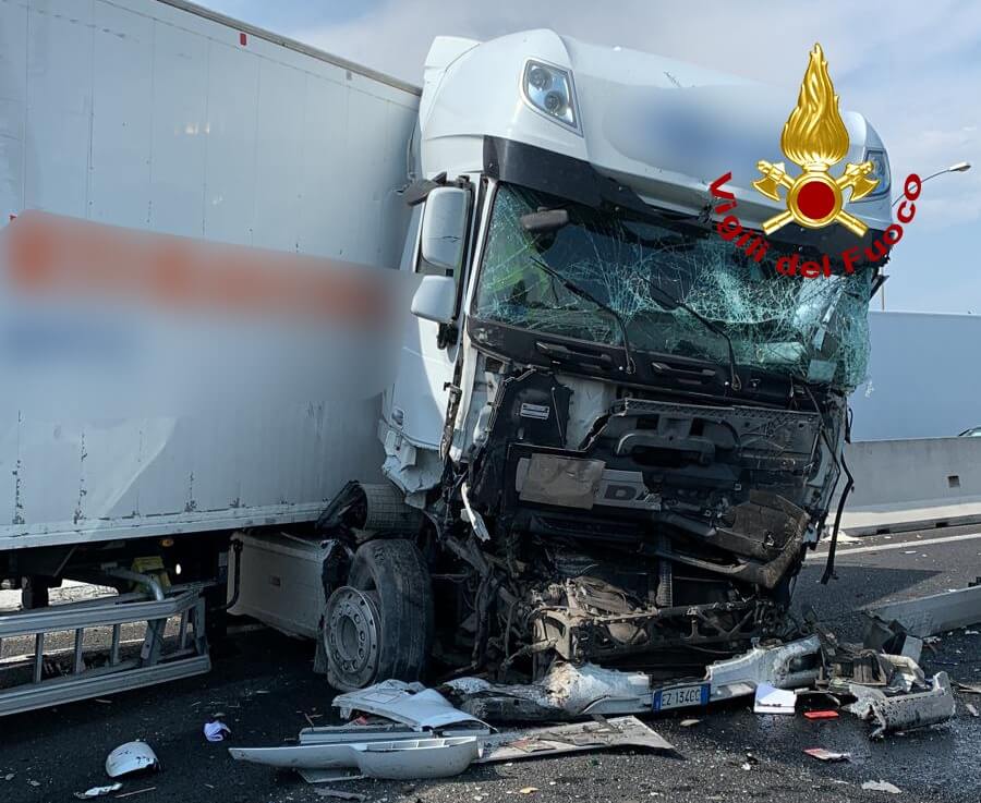 L’incidente alle 15.30. Coinvolti due mezzi pesanti e un autocarro. Morto il conducente dell’autocarro, rimasto incastrato nella cabina di guida. Sul posto il 118, i vigili del fuoco, la polizia stradale e ausiliari di Autovie Venete.