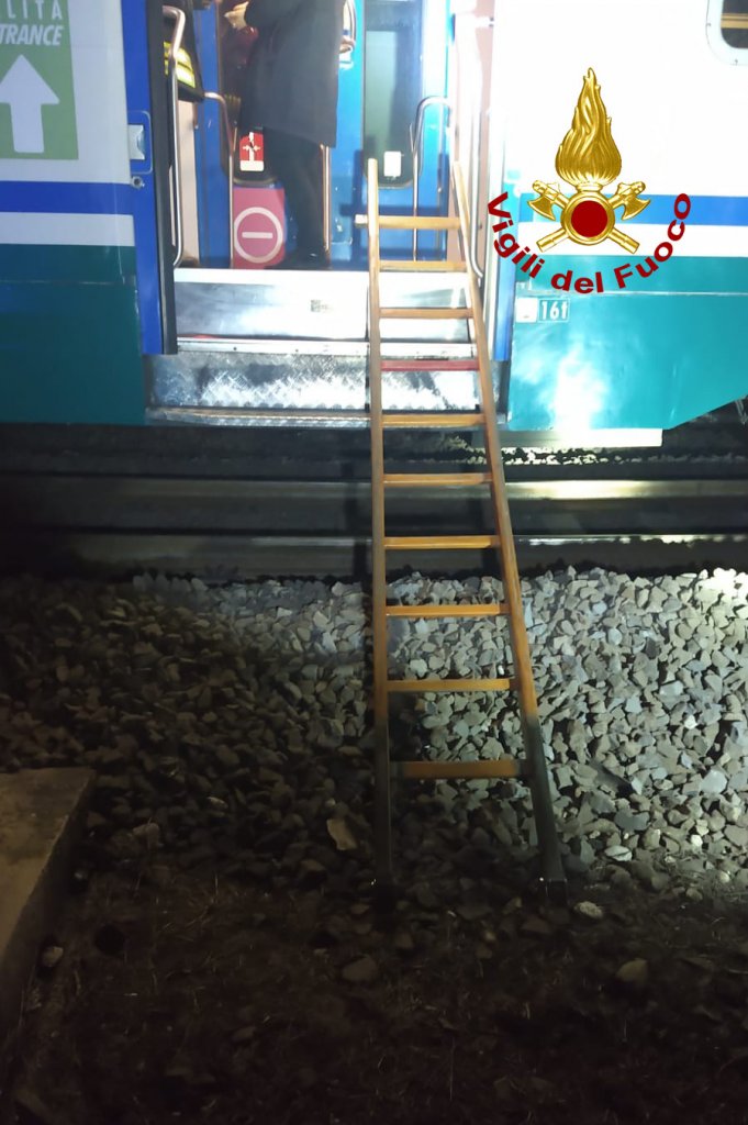 del treno regionale Verona Venezia, che è rimasto bloccato subito dopo il passaggio della passerella pedonale. I vigili del fuoco hanno assistiti i passeggeri fino all’intervento dei tecnici di RFI, che hanno messo in corto la linea. I passeggeri sono stati poi aiutati dai vigili del fuoco durante la discesa del treno avvenuto con l’aiuto di una scala. I passeggeri sono stati poi trasportati in stazione a Vicenza. Ritardi sulla linea per il blocco della linea ferroviaria.
