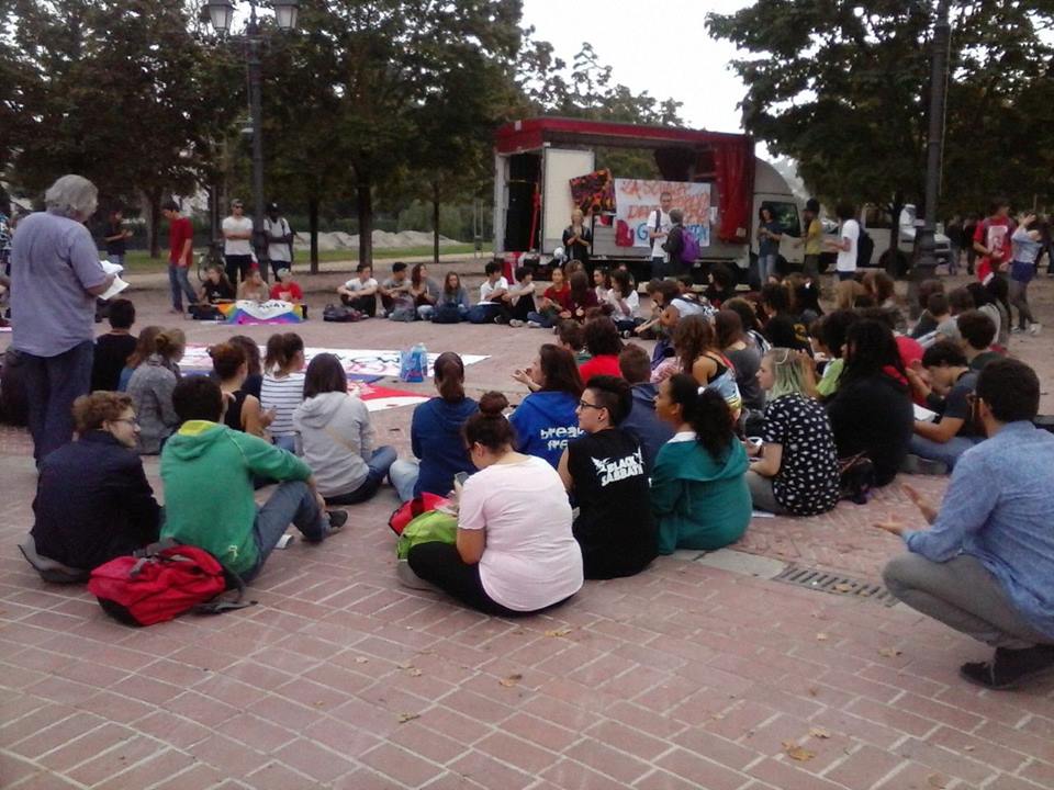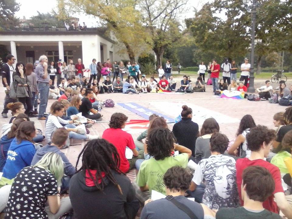 Centinaia di studenti stanno protestando a Vicenza con lo slogan “La Grande bellezza siamo noi”. Già dalla prima mattinata si sono radunati nel piazzale della stazione, organizzati dalla Rete di Studenti Medi. In primo piano i temi dell’edilizia scolastica, del diritto allo studio e alcune questioni di rilevanza sociale, come l’omofobia e la famiglia. Preso di mira il premier Renzi che sta tagliando, dicono, come tutti gli altri. Altro tema scottante la scuola privata e la necessità di ‘dare la precedenza’ alla scuola pubblica. Al corteo è intervenuto anche Mattia Stella di Arcigay Vicenza. Già si fanno le prime stime di adesione. Sembrerebbero al di sotto delle aspettative (circa 500, ma i conti si fanno alla fine). Il traffico in zona stazione è rimasto scorrevole. Tviweb sta seguendo gli studenti e daremo aggiornamenti sulla situazione con foto e interviste.