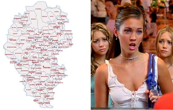 Menzione a parte poi per il Basso Vicentino, una sorta di terra di mezzo per molti studenti vicentini di città, che non hanno mai avuto il piacere di mettere piede a Noventa o a Lonigo, ma che a dire il vero, spesso non si sono mossi da San Lazzaro a San Pio X o viceversa. Viene considerata come una zona lontana e priva di servizi. E gli studenti della bassa replicano con altrettanto snobbismo che per loro “Vicenza è un paesetto” e preferiscono andare a divertirsi a Padova e Verona.