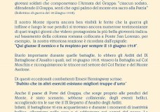 la cerimonia di sabato 23 (ore 9.30) sul Col Moschin, teatro dell’assalto degli Arditi ai quali la memorialistica di guerra tributò incondizionato elogio (lo scrittore statunitense premio Nobel Ernest Hemingway scrisse dei combattenti sul Grappa “Dubito che in altri eserciti esistano migliori truppe d’urto”);