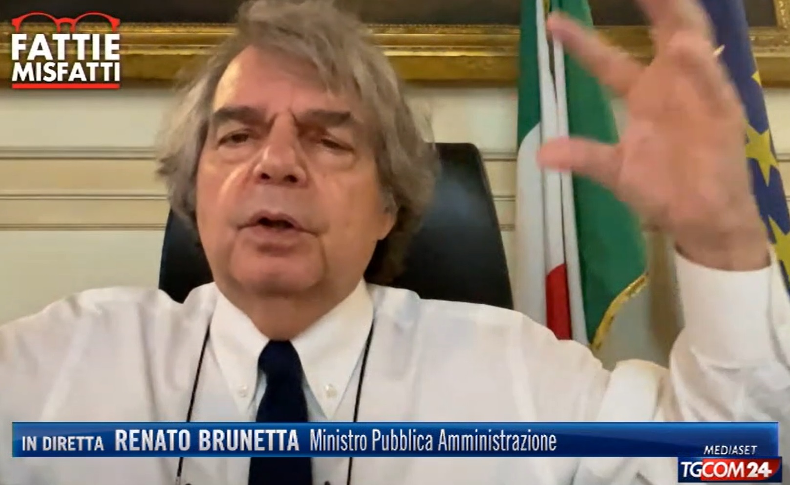 A Sky Tg 24 Brunetta dichiara esattamente: “La scelta di vaccinarsi, difendendo sé stessi dentro una comunità, è la migliore scelta di libertà. E, tra l’altro, fa funzionare anche l’economia. È un ragionamento di buon senso che dice ai non vaccinati: ‘tenetevi le vostre opinioni, ma non potete mettere a rischio gli altri. Quindi casa, tampone per il lavoro e poi state a casa, tranquillamente, a guardare la televisione‘”.