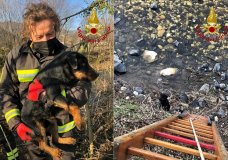 ARZIGNANO – I pompieri salvano Rocky, finito nel Chiampo