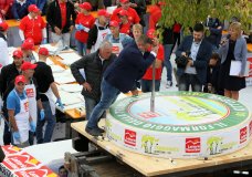 L’assalto alla forma gigante di formaggio