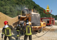 Principio di incendio di un mezzo in una cava, pompieri in azione