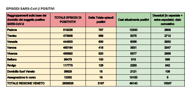 Covid Veneto: quasi 12mila i positivi, 457 contagiati, 3 morti