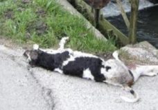 Incivile abbandono. Carcassa di vitellino in una roggia