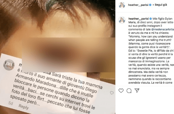Heather Parisi il silenzio sulla morte di Maradona con un post in cui racconta la reazione di suo figlio Dylan Maria a un commento sul suo profilo Instagram. La showgirl, com’è noto, vive a Hong Kong con suo marito Umberto Anzolin, imprenditore vicentino originario di Arzignano, e...Leggi tutto