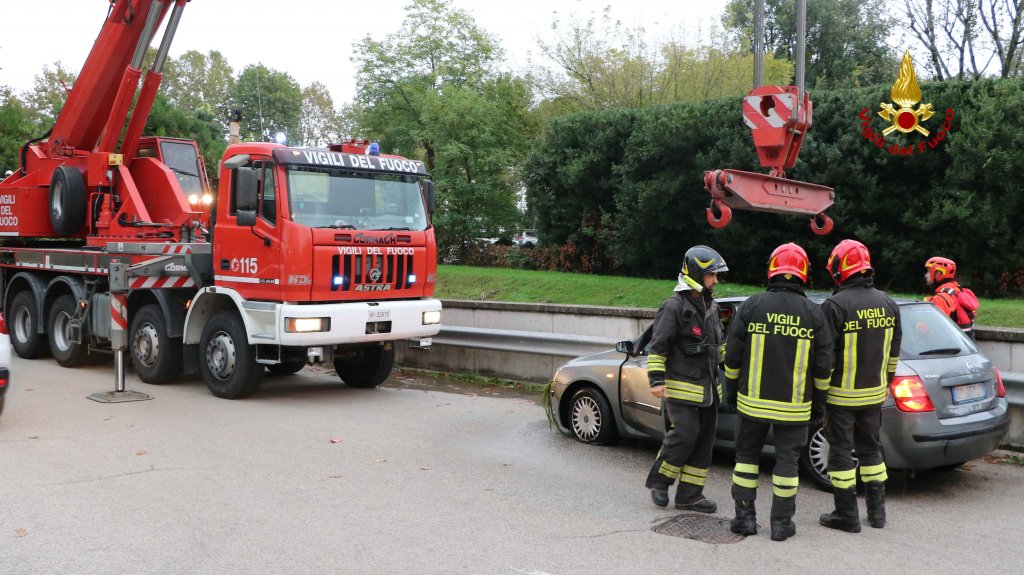 Poco dopo le 6, i vigili del fuoco sono intervenuti in via Rodolfi a Vicenza per un’auto finita nell’Astichello e fermatasi 50 metri prima del ponte pedonale che collega l’ospedale san Bortolo a parco Querini. Nessuna persona ferita. La Fiat Stylo parcheggiata a ridosso della staccionata in legno è finita nel torrente Astichello dopo essere stata tamponata da un altro veicolo che si è poi dileguato, come asserito dalla conducente che fortunatamente era fuori dall’auto. I vigili del fuoco arrivati con il personale di prima partenza e il supporto dell’autogru di Verona, hanno agganciato l’auto con delle fasce, che è stata poi issata e depositata lungo la strada interna dell’ospedale che porta al pronto soccorso. La polizia locale di Vicenza ha effettuato i rilievi e sta ricostruendo tutta la dinamica del sinistro. Le operazioni di soccorso dei vigili del fuoco sono terminate alle 8. 30.