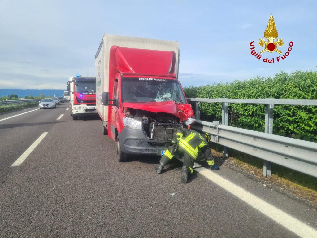 Alle 16:30, di giovedì 18 aprile, i vigili del fuoco sono intervenuti in autostrada A31 tra lo svincolo di Vicenza Nord e l’intersezione dell’A4 in direzione Sud per un tamponamento tra due furgoni: leggermente feriti i due autisti. I pompieri accorsi dalla centrale, hanno messo in sicurezza i mezzi, mentre gli autisti sono stati assistiti sul posto dal personale sanitario del Suem. Sul posto la polstrada e gli ausiliari di autostrada.