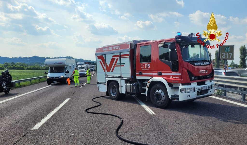 Alle 15:45, di giovedì, i vigili del fuoco sono intervenuti in autostrada A4 tra gli svincoli di Vicenza Ovest ed Est dopo le gallerie dei berici per un tamponamento e l’incendio di un’auto: una giovane conducente ferita. I pompieri accorsi da Vicenza, hanno raggiunto con non poche difficoltà per la galleria completamente occupata delle auto il luogo dell’incidente spegnendo la Lancia Y che ha tamponato, la cui conducente è rimasta ferita. La donna è stata presa in cura dal personale sanitario del Suem e trasferita in ospedale. Illese le due persone che viaggiavano nel piccolo furgoncino tamponato. Sul posto il personale ausiliario di autostrada e la polizia stradale. A causa dell’incendio si sono formate lunghe code con notevoli ripercussioni sul traffico autostradale.