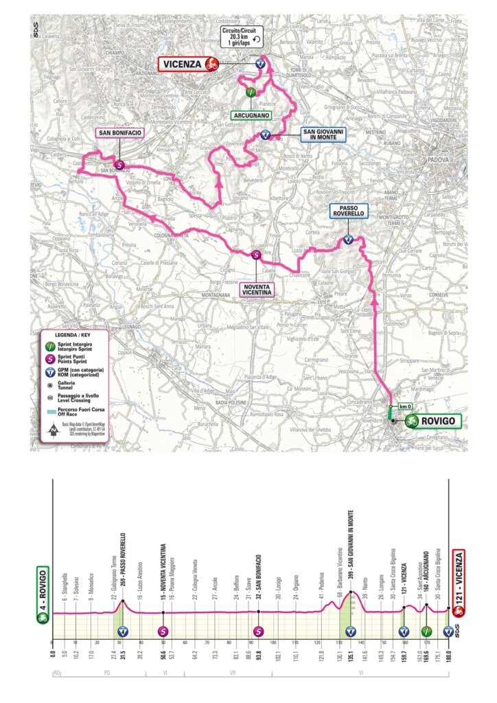 Nelle ore precedenti l’arrivo della Tappa dei Berici, si terrà la manifestazione ciclistica non competitiva Giro-E, organizzata dalla società RCS Sport S.p.A., con ingresso nel territorio comunale da viale Riviera Berica (provenienza da Longare), Borgo Berga, piazzale Fraccon, viale Risorgimento Nazionale, viale Dante, viale X Giugno e arrivo al davanti al Santuario di Monte Berico.