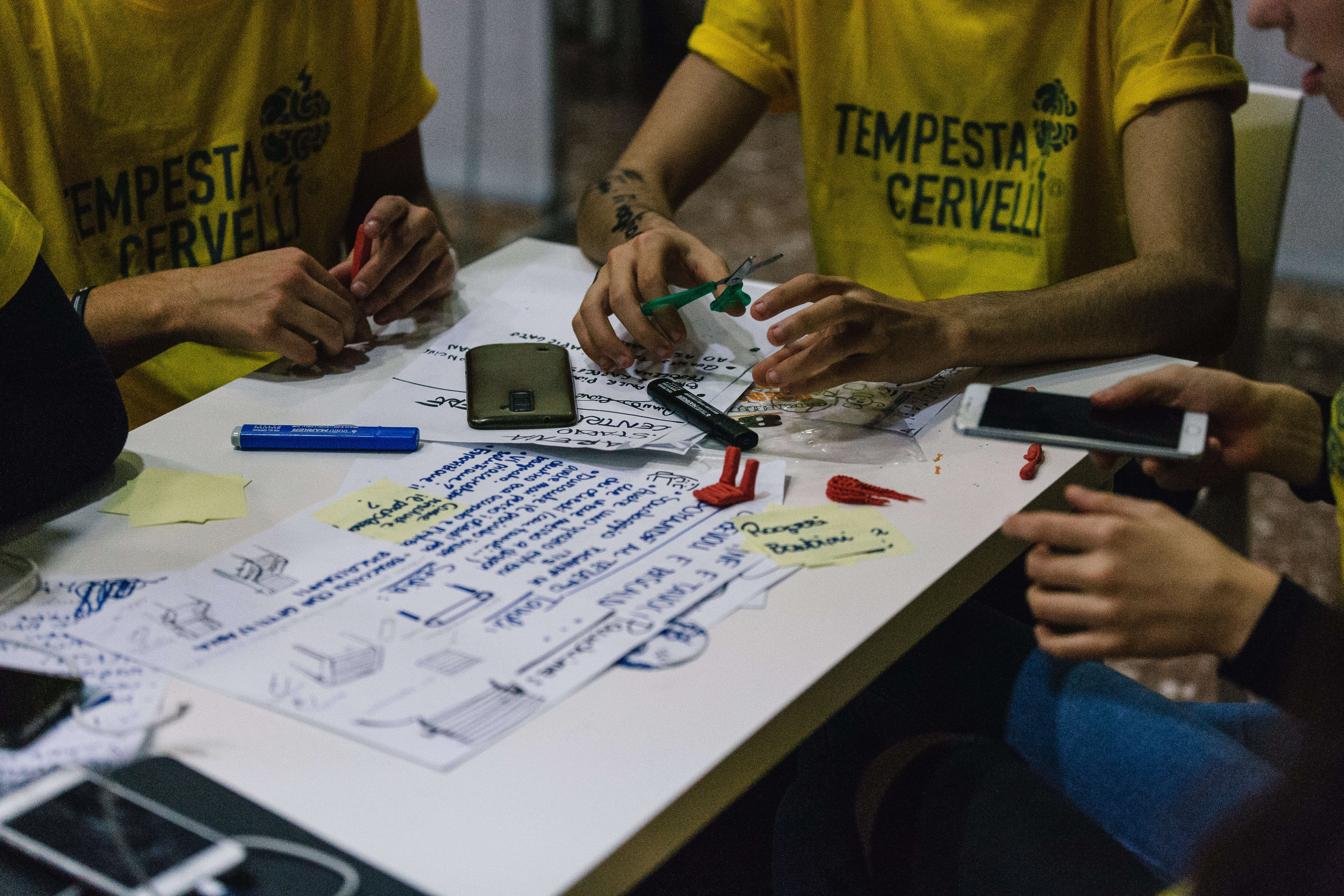 La “Tempesta di Cervelli” si è articolata in un laboratorio didattico di sedici ore (un pomeriggio, una giornata intera, una mattina) che ha permesso agli studenti di conoscere i temi della “lean start-up” e quindi di guidarli al concepimento, sviluppo, progettazione, prototipazione, pianificazione e presentazione di un’idea imprenditoriale, in clima di lavoro ma anche di divertimento.