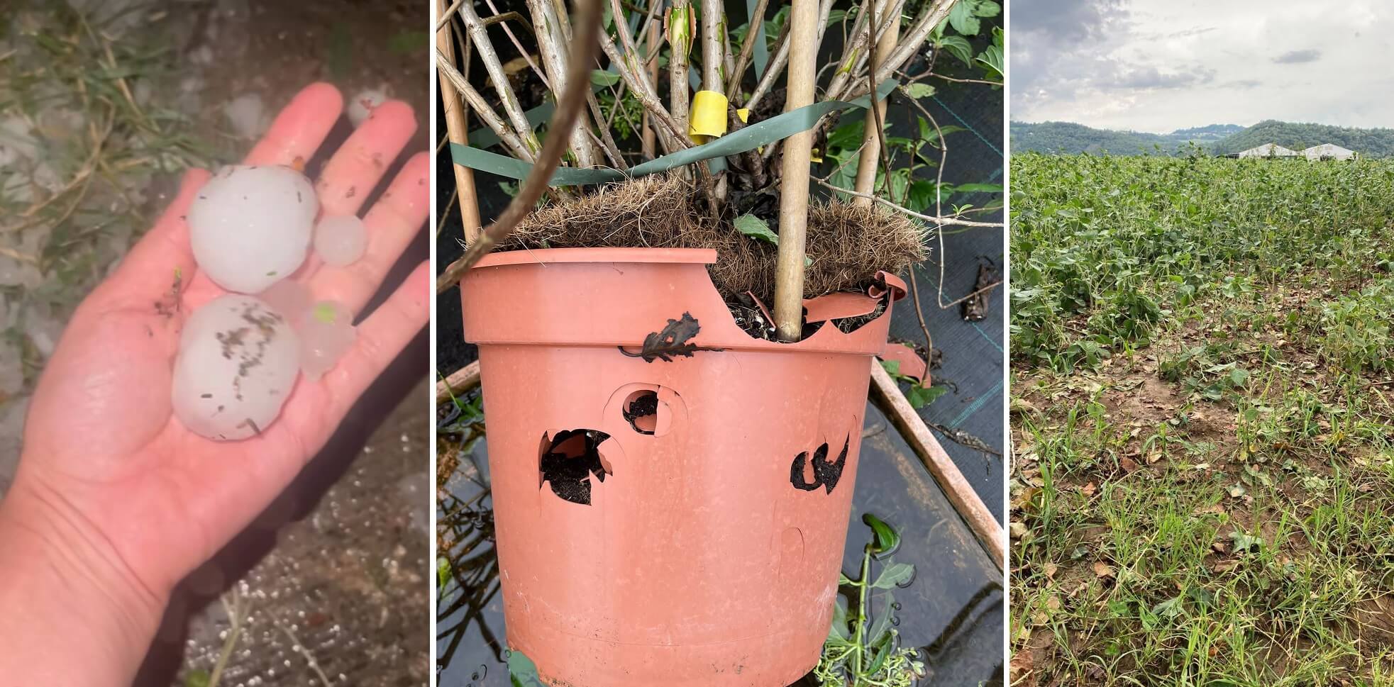 Comincia la conta dei danni nelle campagne vicentine dopo la tempesta che ha colpito il territorio la notte scorsa, con forti raffiche di vento e chicchi di grandine grossi come palline da tennis che hanno colpito violentemente le colture. Le aziende agricole più danneggiate sono nei territori di Costabissara, Caldogno, Isola Vicentina, Monticello Conte Otto, con mais e soia tra le coltivazioni più danneggiate, anche se si registrano perdite anche per orticole, vigneti e vivai. A Caldogno il vivaio di Ivan Zazzaron ha subito perdite a piante sempreverdi, ornamentali ed altre in vaso, oltre che a strutture scaraventate a terra dal vento e rami spezzati.