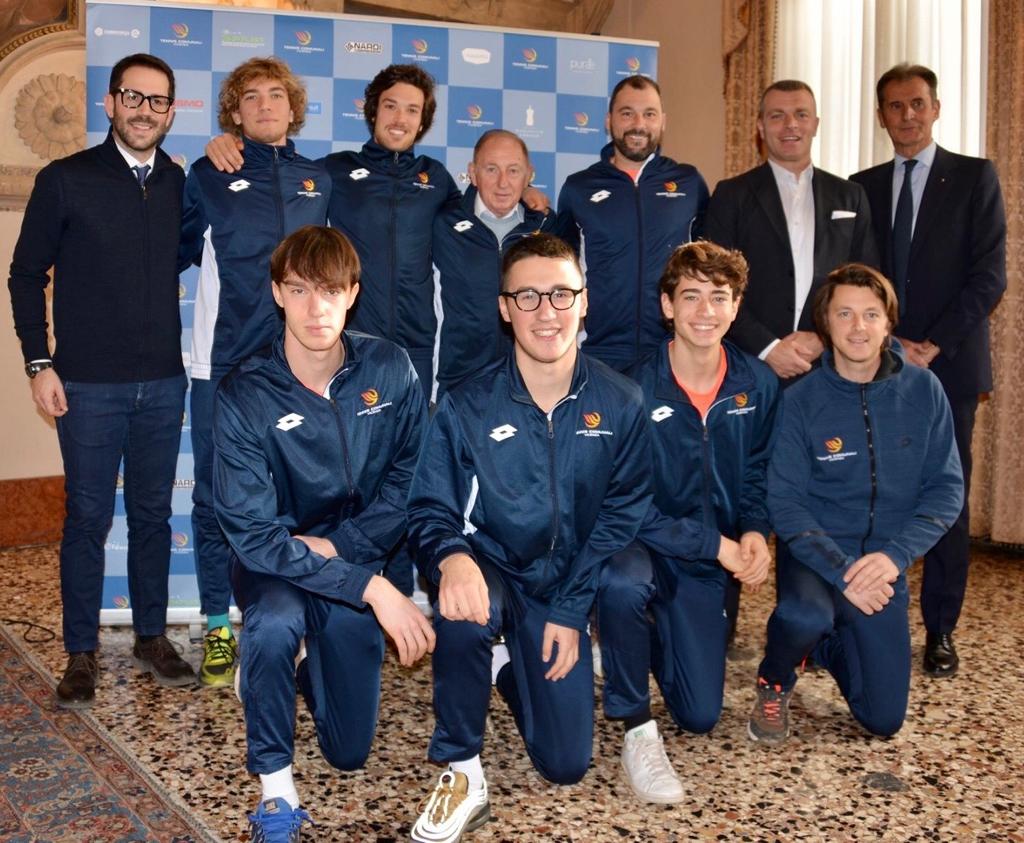 Nella straordinaria cornice di sala degli Stucchi a Palazzo Trissino l’assessore alle attività sportive Matteo Celebron ha ricevuto la squadra di Tennis del circolo dei Comunali di Vicenza neo promossa in serie A1. Una cavalcata vincente, che ha portato il team un po’ in tutta Italia, da nord fino alla Sicilia, in un crescendo di emozioni culminate nella doppia finale dei playoff contro il TC Lecco.