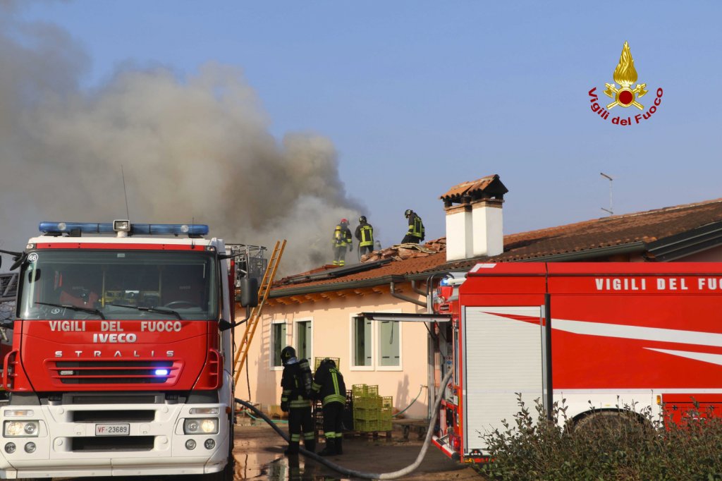 Dalle 10:15 di stamane circa i vigili del fuoco stanno operando in strada di Casale a Vicenza per un incendio tetto di una bifamiliare. L’incendio probabilmente innescato da un camino si è subito diffuso al tetto ventilato. Le squadre dei vigili del fuoco intervenuti con un’autopompa un’autobotte e un’autoscala e nove operatori coordinate al funzionario di guardia e dal capo servizio stanno tagliando con una apposita motosega parte della copertura per evitare il coinvolgimento di tutto l’edificio. Intervento in corso.