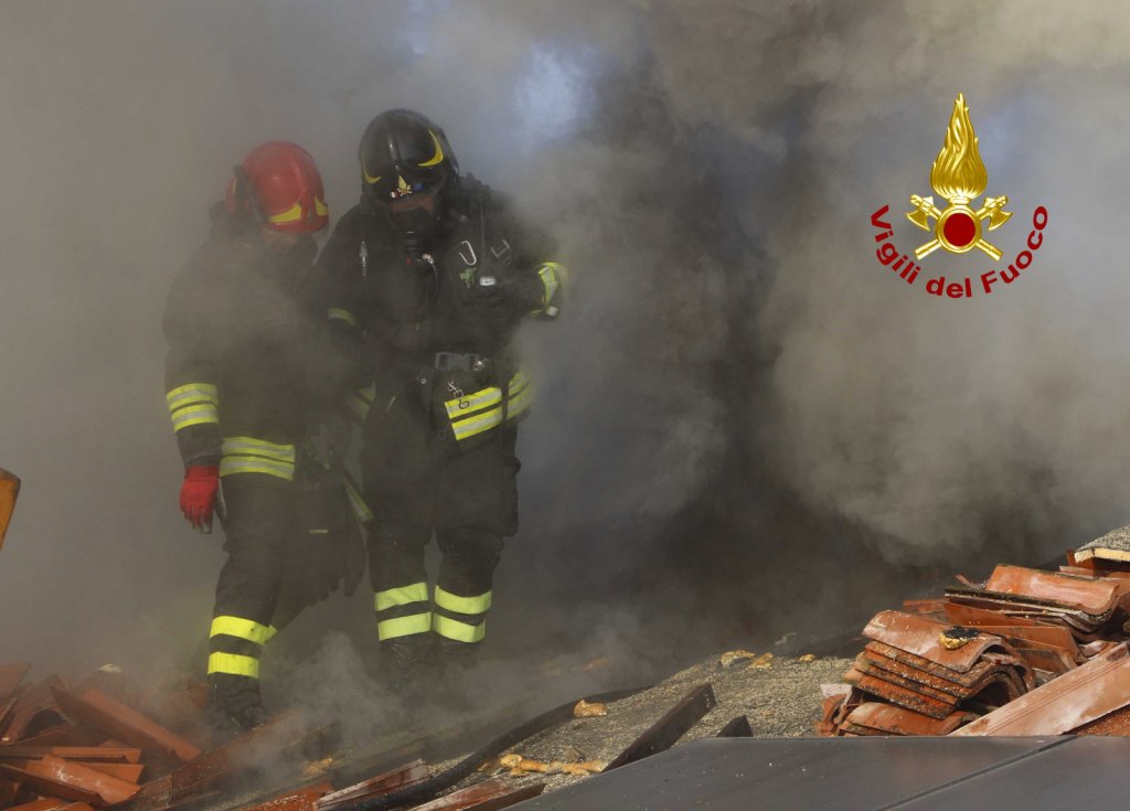Tetto di una casa in fiamme: pompieri al lavoro (FOTO)