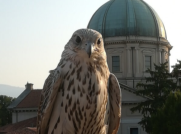 Dopo il falco elettronico, a mettere in fuga dal centro storico di Thiene i piccioni, ora ci prova il falco, quello vero.