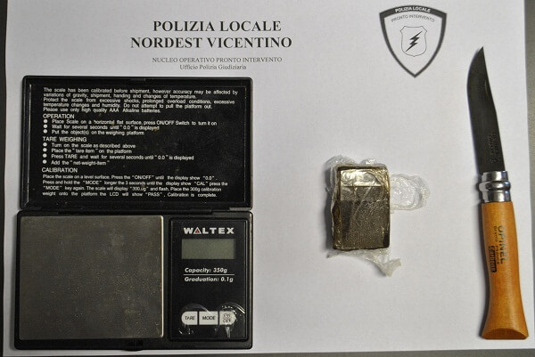 Avendo avuto notizia di attività di spaccio di hashish tra la stazione delle Corriere ed alcuni istituti scolastici di Thiene, su indicazione dell’Amministrazione Comunale la Polizia Locale Nordest Vicentino ha organizzato specifici servizi di controllo. Intorno alle ore 19:00 di sabato 1 luglio è stato controllato il cortile interno delle scuole medie Ferrarin, dove erano presenti tre ragazzi. Nella circostanza è stato rinvenuto, nascosto sotto un tombino, un bilancino di precisione. I giovani, tutti appena maggiorenni, sono stati comunque ammoniti di non tornare più nella scuola.