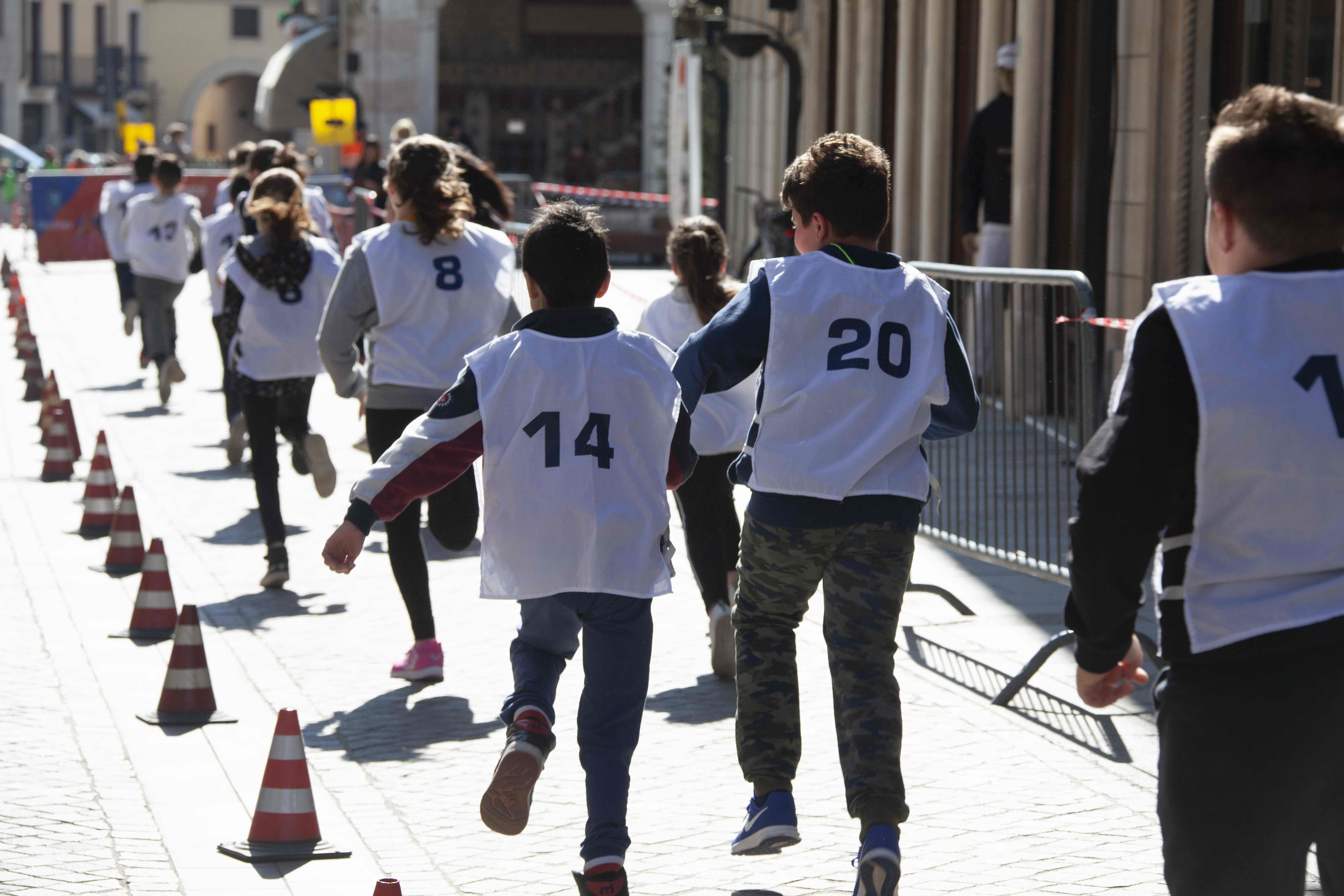 Un torrente colorato di circa 500 ragazzini che hanno corso in squadra, ovvero per gruppo classe, si è riversato su un percorso di circa 700 metri, con partenza ed arrivo in piazza Ferrarin, interessando le vie Corso Garibaldi, piazza Chilesotti, piazzetta Rossi e via Roma, girando attorno all’ Urban Center.