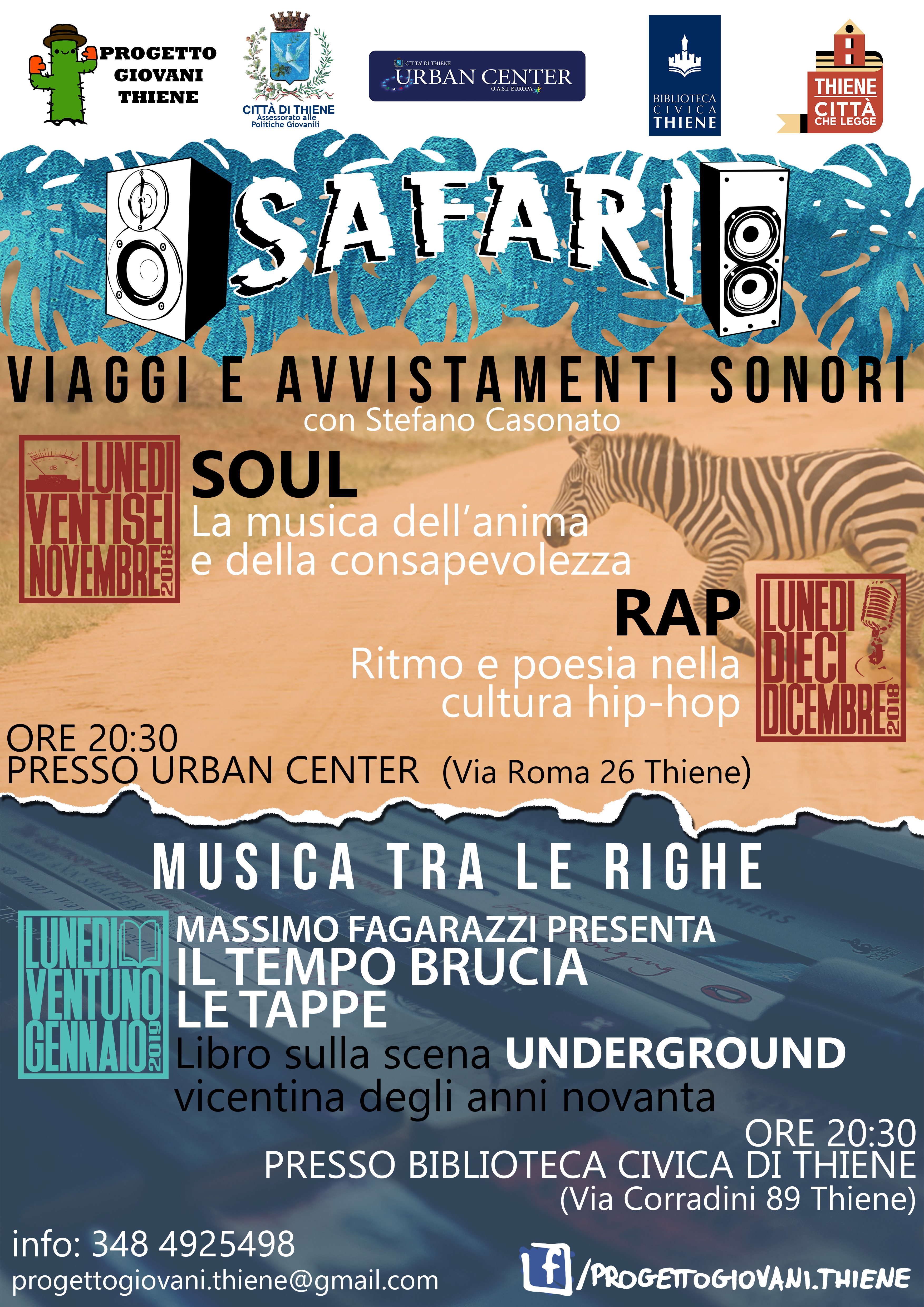 Il Progetto Giovani Thiene, promosso dall’Assessorato alle Politiche Giovanili del Comune di Thiene, organizza, per il secondo anno consecutivo, “Safari”, la rassegna pensata per approfondire le conoscenze musicali, realizzata con Stefano Casonato in collaborazione con Urban Center Thiene e Biblioteca Civica.