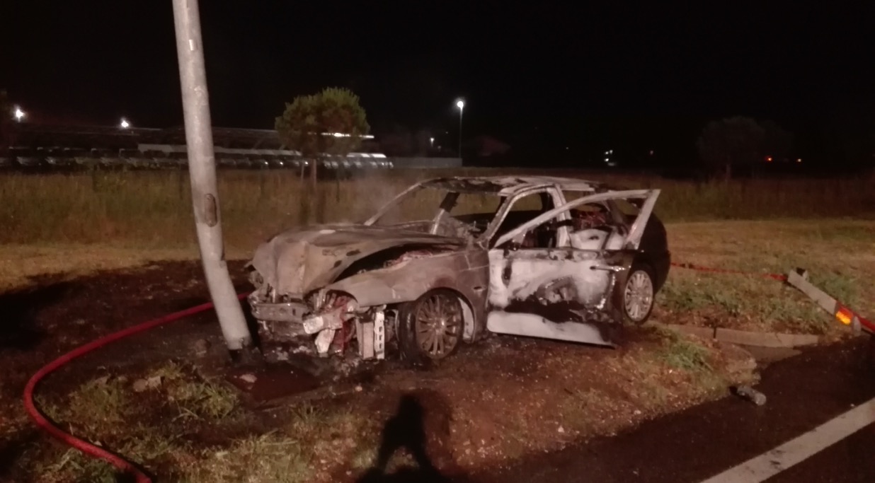 THIENE- Si schianta contro un palo, auto in fiamme: multato