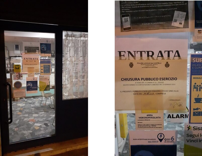 Nei giorni scorsi l’esercizio era già stato sanzionato dagli agenti per il mancato rispetto dell’obbligo di super green pass per la consumazione. Sia la titolare del bar che il cliente privo di certificazione verde si erano beccati 400 euro ciascuno, tale è l’importo minimo previsto che si applica in caso di prima violazione.
