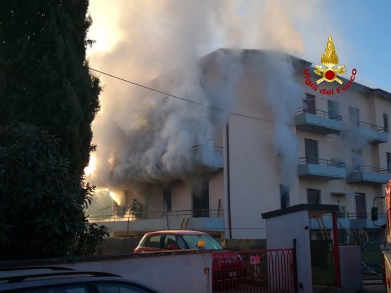 AGGIORNAMENTO ORE 11 – Interessato dalle fiamme un appartamento al primo piano occupato da una famiglia di nazionalità ghanese. Le fiamme si sono poi propagate al corrispondente appartamento che si trova al secondo piano, occupato da una famiglia di nazionalità macedone.