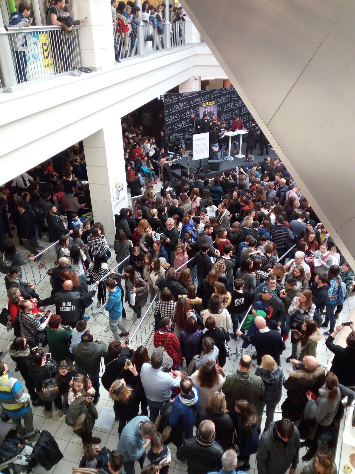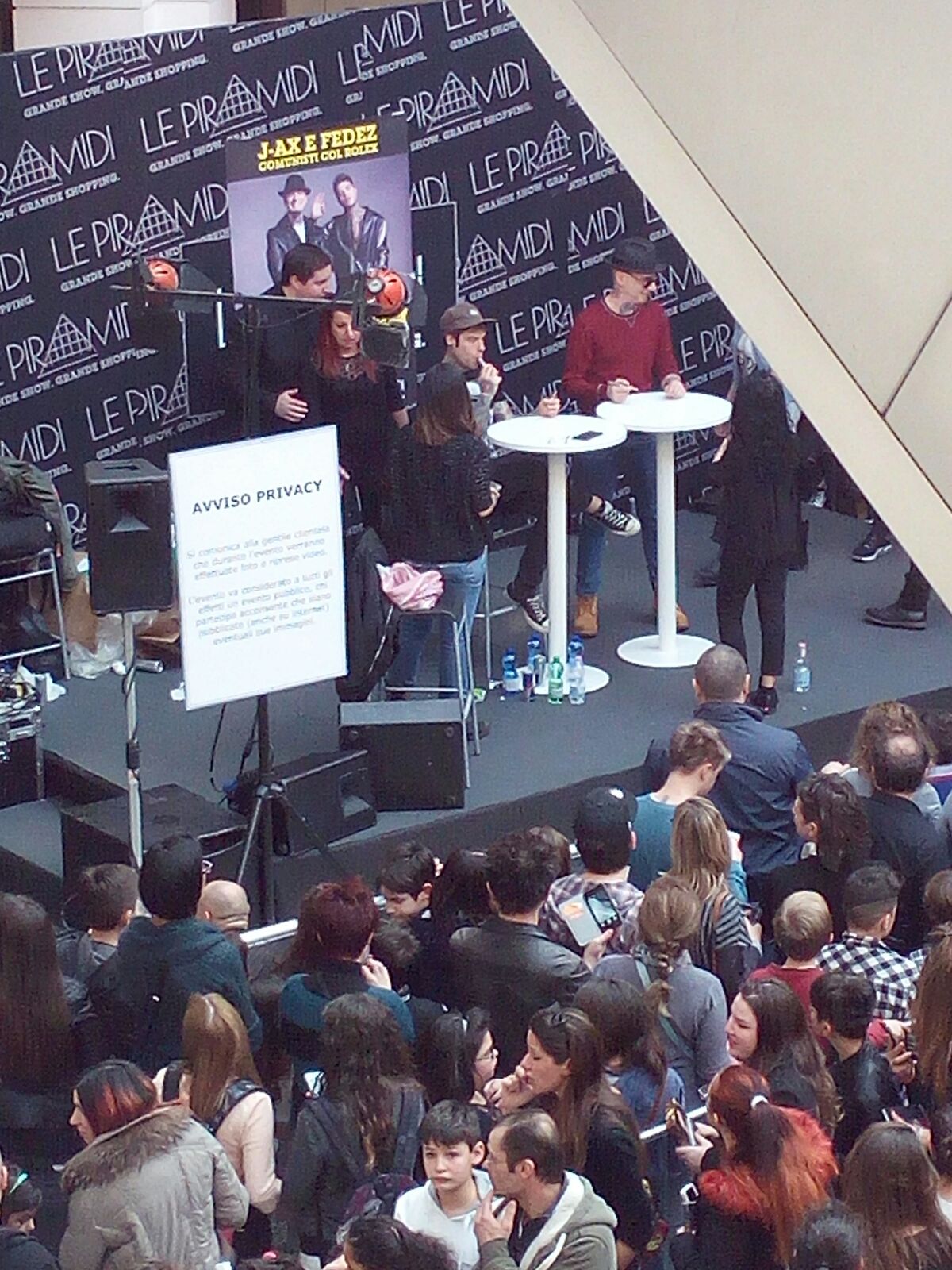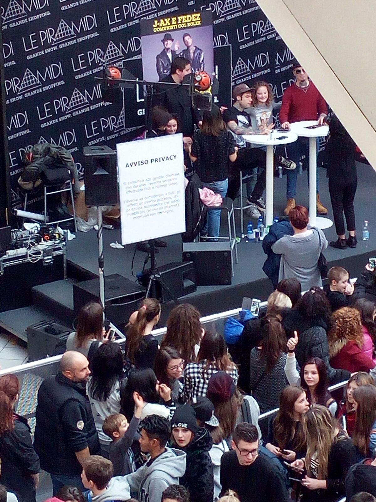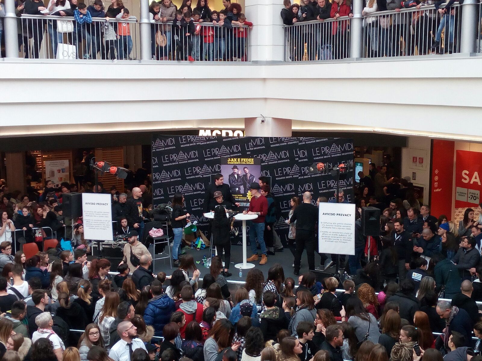 Un bagno di gioventù ad attendere i rapper Fedez e J-Ax sabato 28 gennaio nella piazza centrale del centro commerciale “Le Piramidi” di Torri di Quartesolo ad ora di pranzo. I due cantanti – spesso sotto la luce dei riflettori non solo per la loro carriera canora ma anche per le vicende social e la partecipazione a numerosi programmi televisivi noti – si sono dedicati interamente ai loro fan incontrandoli, scattando foto e autografando copie del loro nuovo album “Comunisti col Rolex”. I fan sono accorsi da tutti la provincia ma anche da fuori e chi non è potuto venire da solo si è fatto accompagnare dai genitori. Insomma, vicentini impazziti per i loro idoli.