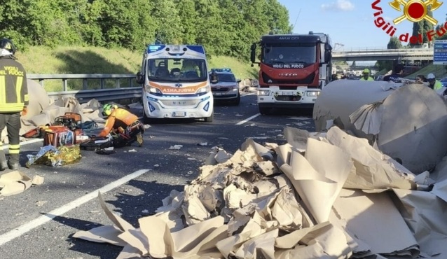 Il giovane viaggiava in direzione nord insieme alla fidanzata, una 24enne, quando all’altezza della zona tra Monte San Savino e Valdichiana, nei pressi di Sinalunga, un camion che procedeva nella carreggiata opposta ha perso il proprio carico: pesanti bobine di carta che hanno invaso la corsia opposta travolgendo in pieno l’auto della coppia.