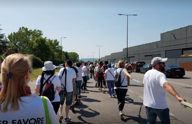 Nel Giorno Mondiale della Terra ieri i comitati NoPfas hanno accerchiato la Miteni in una sorta di protesta simbolica e fisica per sensibilizzare sul problema Pfas. Ospiti, associazioni, gruppi, comitati, movimenti da tutta la Regione e da varie parti d’Italia si sono dati appuntamento a partire dalle 11 davanti all’azienda di Trissino per una protesta pacifica ed organizzata. Yael Deckelbaum, definita la Joan Baez dei nostri tempi è arirvata direttamente da Boston, interrompendo la tournée, per partecipare all’accerchiamento I ragazzi delle Scuole Medie del territorio hanno invece presentato una performance teatrale sui PFAS. Presenti poi cori musicali prima e dopo la Santa Messa, musica popolare, volontari degli Alpini e delle grandi associazioni ambientaliste come Greenpeace e Legambiente, oltre a tutti i Movimenti No PFAS.